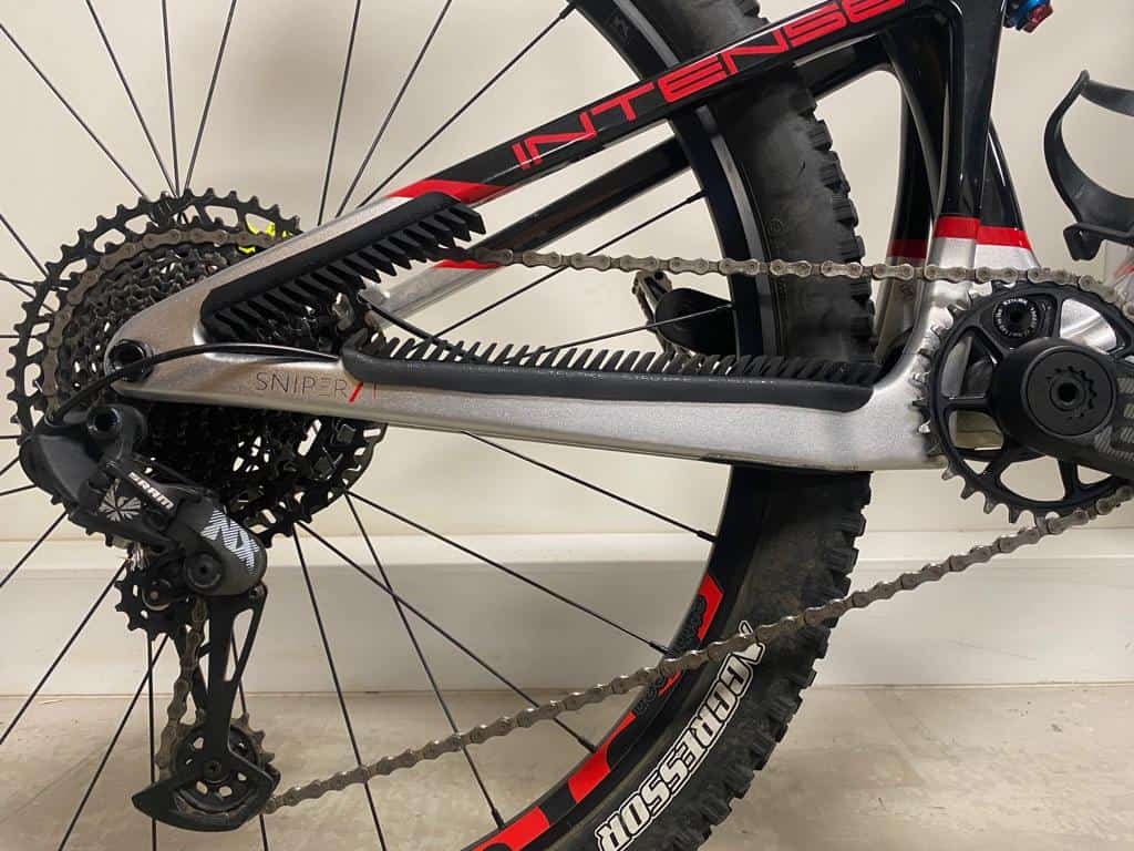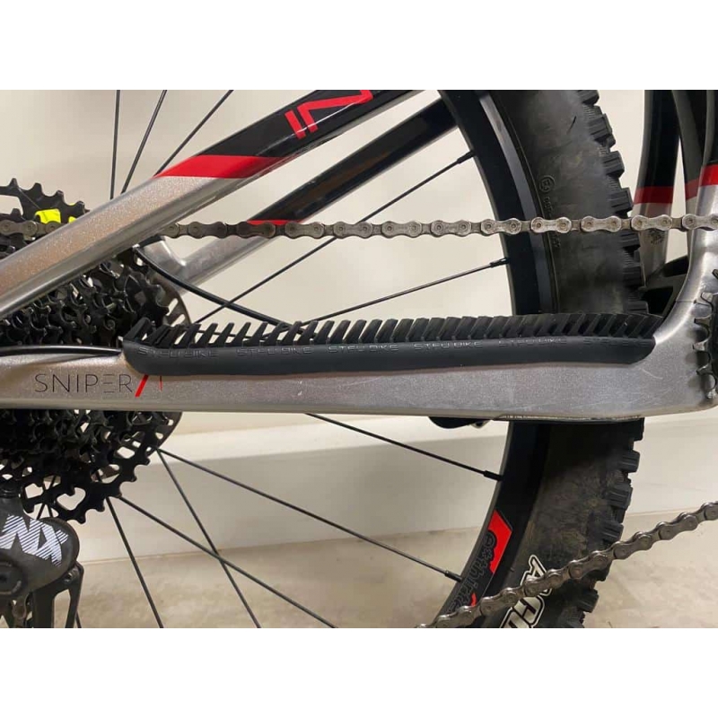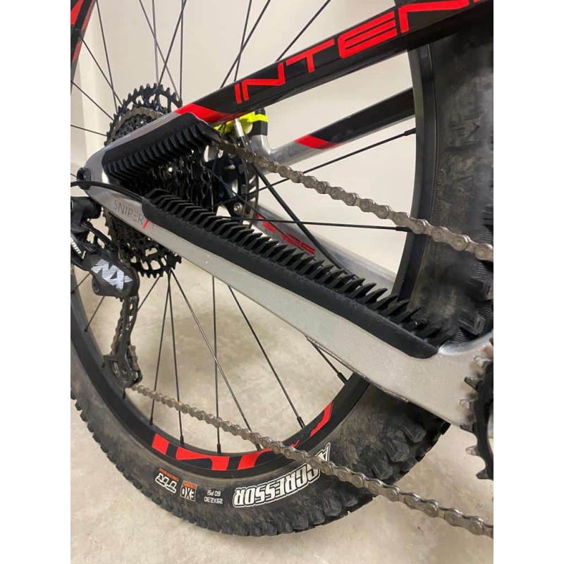 STFU Stay Guard to nisko profilowa osłona rurek tylnego trójkąta, która wykorzystuje super miękkie zwężające się płetwy z silikonu, aby pochłaniać siły uderzenia łańcucha i związany z tym hałas. Działa świetnie samodzielnie, a jeszcze lepsze efekty przynosi w połączeniu z prowadnicami STFU. Załatw sobie ciszę podczas jazdy raz na zawsze! Eliminuje niepożądane hałasy powstające podczas jazdy w trudnym terenie. Dzięki temu ty w pełni możesz skupić się na trasie, którą podążasz.