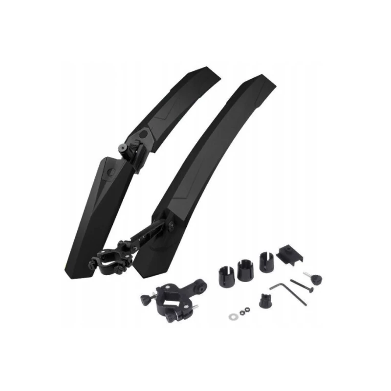 Zadbaj o czystość i komfort jazdy w każdych warunkach dzięki temu uniwersalnemu zestawowi błotników rowerowych, przeznaczonemu do rowerów górskich (MTB). Ich innowacyjna konstrukcja zapewnia skuteczną ochronę przed błotem, wodą i kamieniami, które mogą lecieć spod kół.