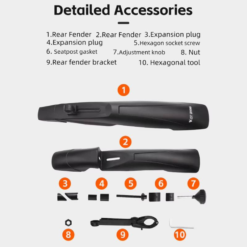 Te błotniki rowerowe WEST BIKING to niezbędne wyposażenie dla każdego użytkownika roweru górskiego, który ceni sobie wygodę i ochronę w trudnym terenie. Zostały zaprojektowane jako poszerzone i wydłużone, aby zapewnić maksymalną osłonę przed błotem, brudem i wodą, utrzymując rower i odzież w czystości.