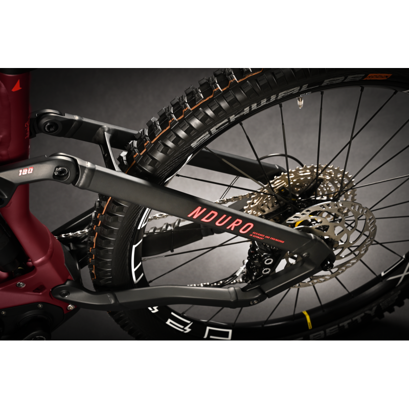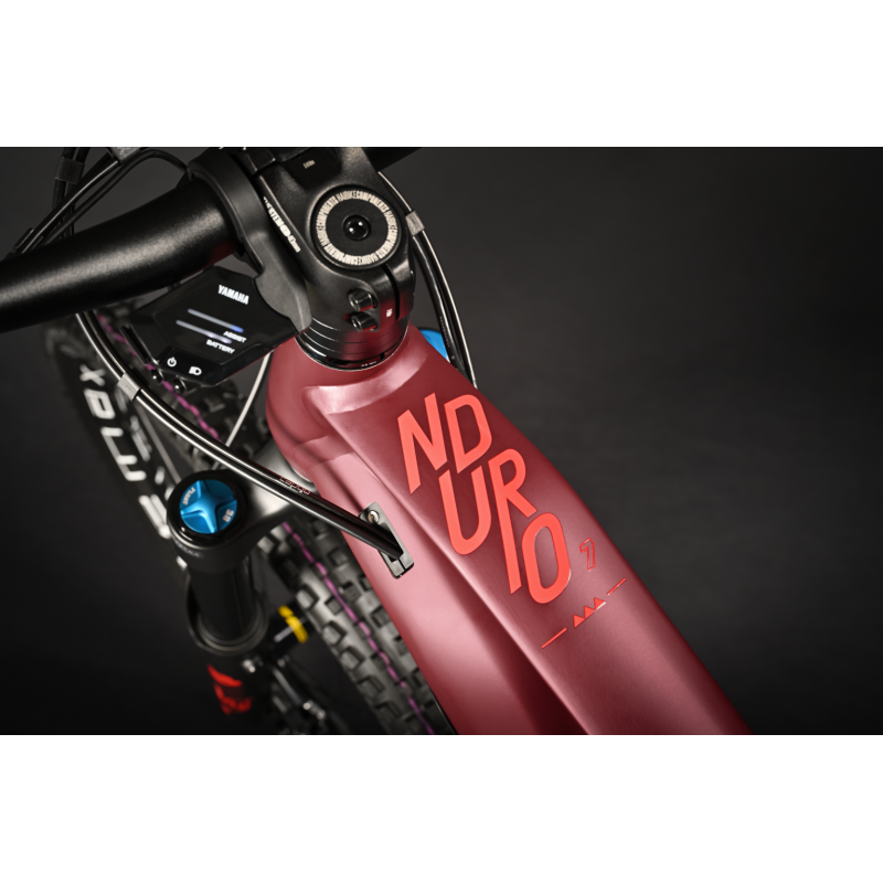 Gotowy na adrenalinę. Gotowy do akcji. Model NDURO 7 świetnie radzi sobie na większości wymagających tras. Jest idealnym towarzyszem miłośników freeride'u i parków rowerowych. Kompaktowy, potężny silnik Yamaha PW-X3 w dowolnej chwili zabierze Cię do punktu startowego Twojej ulubionej trasy. Skok 180 mm z przodu i z tyłu, konfiguracja mullet z kołem przednim 29″ i kołem tylnym 27,5″ oraz hamulce tarczowe Magura MT5 zapewniają wszystko, czego potrzebujesz do ostrej jazdy. Dzięki geometrii roweru nie musisz poświęcać osiągów na trudnych technicznie podjazdach ani przy wymagających zjazdach. Progresywny tylny trójkąt z konstrukcją zapobiegającą osiadaniu zawieszenia (Anti-Squat) oferuje jeszcze większą sprawność pokonywania podjazdów. Mówiąc krótko, jest to rower enduro e-MTB przygotowany do przygód przepełnionych akcją i jeszcze większą dawką adrenaliny.
