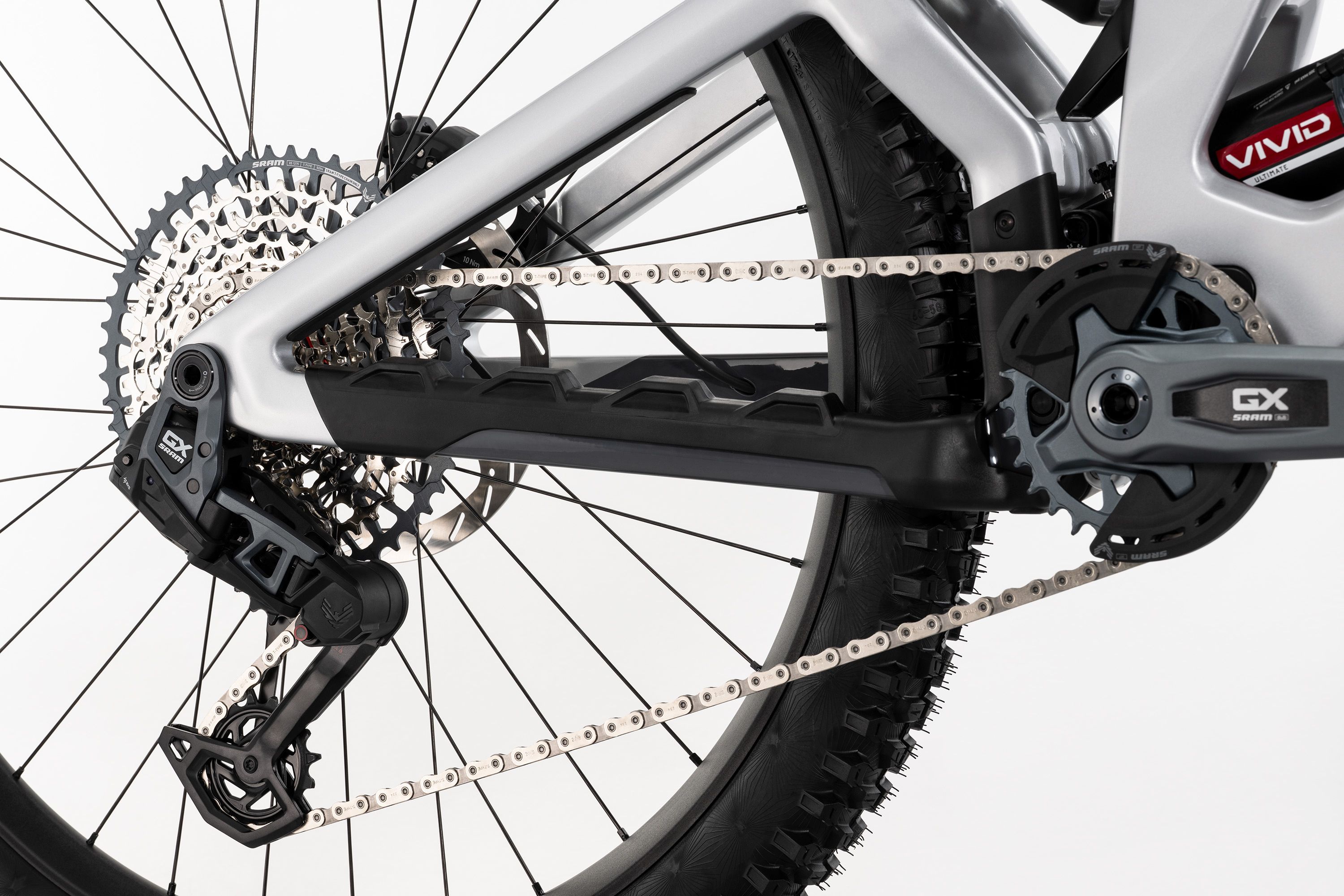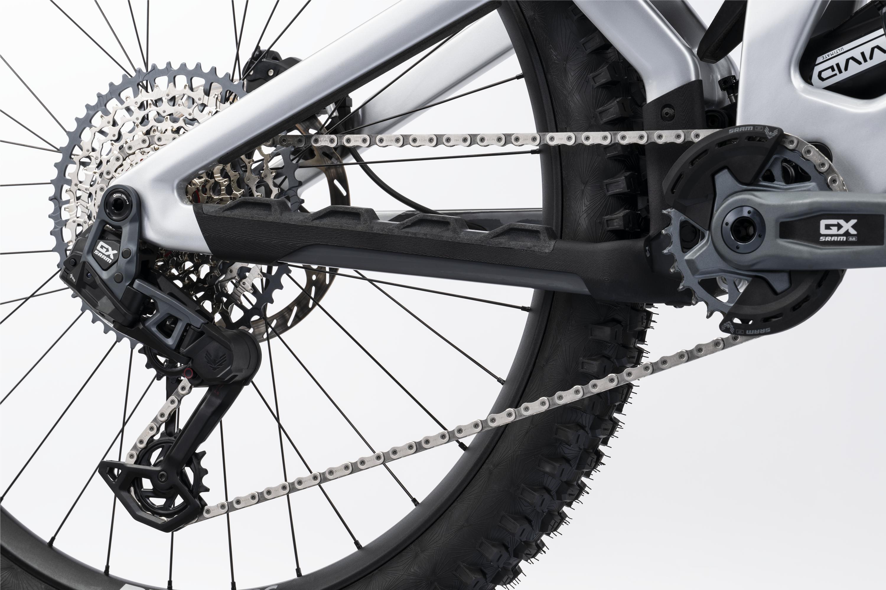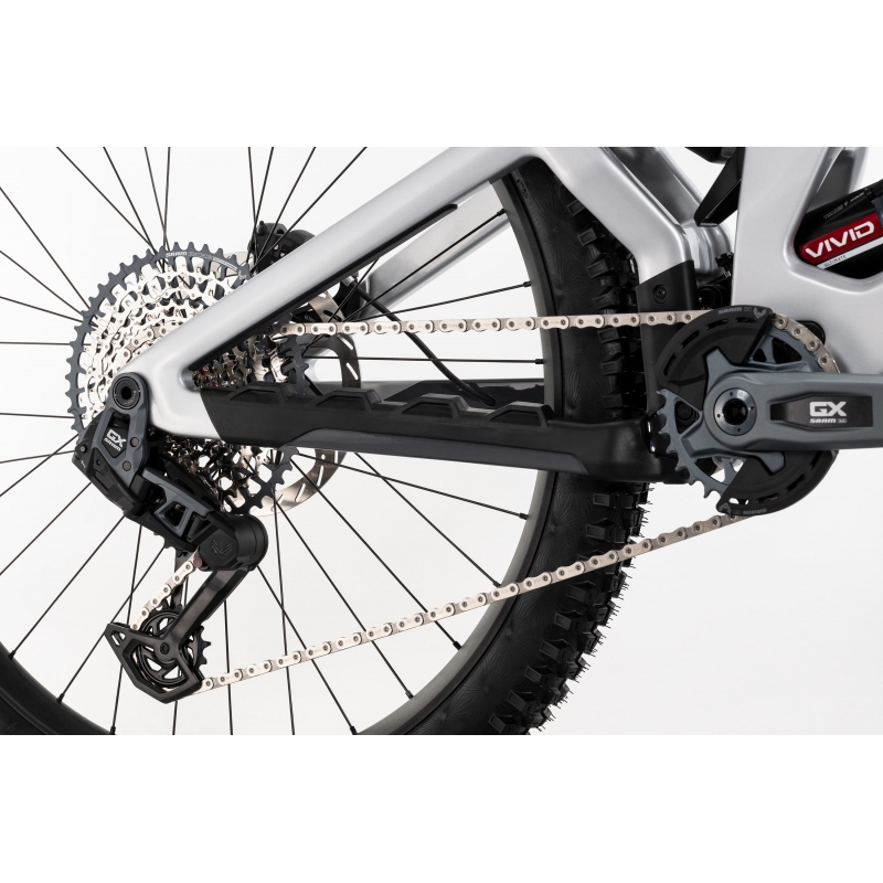 Z przodu pracuje RockShox ZEB Ultimate Charger 3.1 RC2, a z tyłu RockShox Vivid Ultimate – oba na sprężynie powietrznej DebonAir+, oferując pełną kontrolę nad terenem. Napęd SRAM GX Eagle AXS T-Type 12‑speed to bezprzewodowa precyzja i niezawodność na najwyższym poziomie.