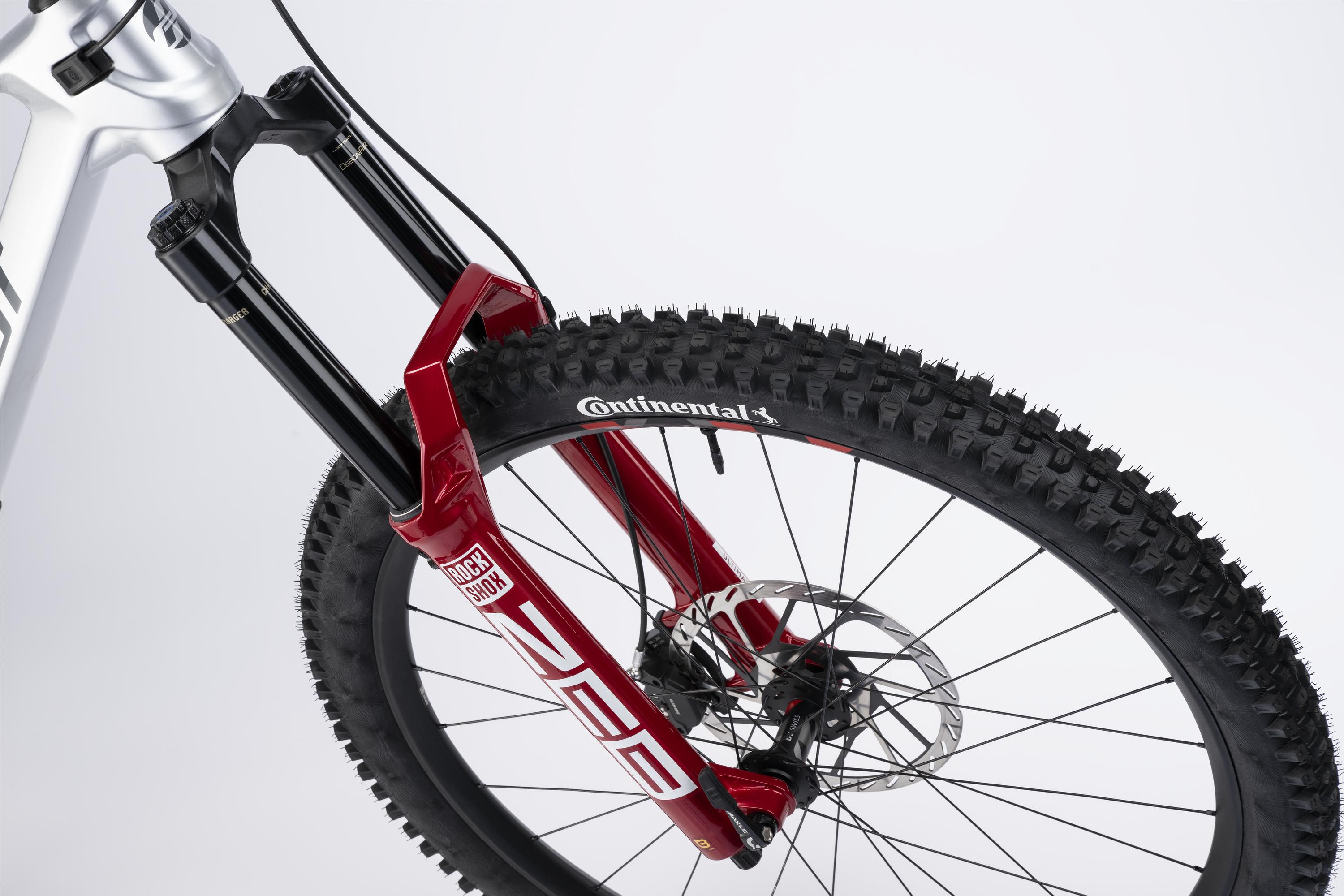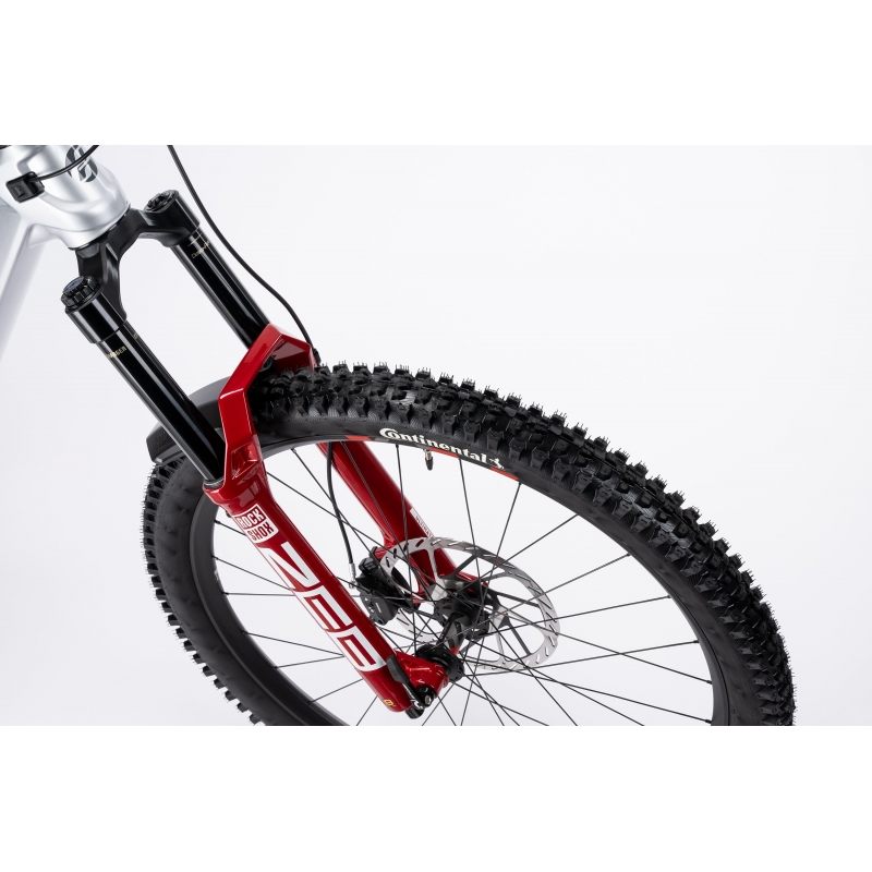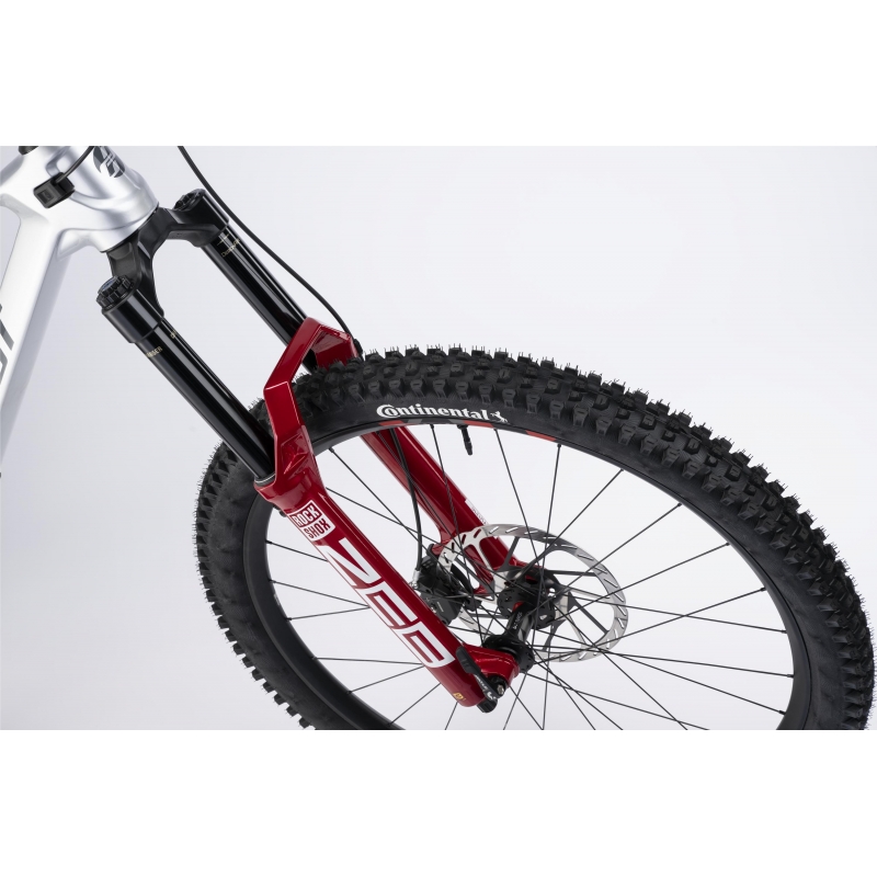 Hamulce SRAM DB Maven Silver w rozmiarach 220 mm (przód) i 200 mm (tył) z 4‑tłoczkowymi zaciskami to gwarancja maksymalnej siły hamowania. Koła DT Swiss FR 1500 w konfiguracji mullet (29"/27.5") oraz opony Continental Kryptotal Enduro/Downhill Soft zapewniają doskonałą trakcję i odporność na uszkodzenia.