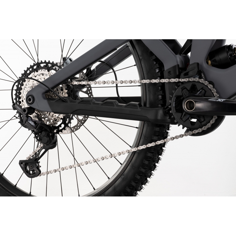 Przedni amortyzator FOX 38 FLOAT Factory GRIP X2 Boost oraz tylny FLOAT X2 Factory 250x70 mm zapewniają 180 mm skoku, pełną kontrolę oraz dostosowanie do każdego rodzaju terenu. Napęd Shimano Deore XT 12s z kasetą 10–51T i korbą Hollowtech II gwarantuje niezawodność i szeroki zakres przełożeń.