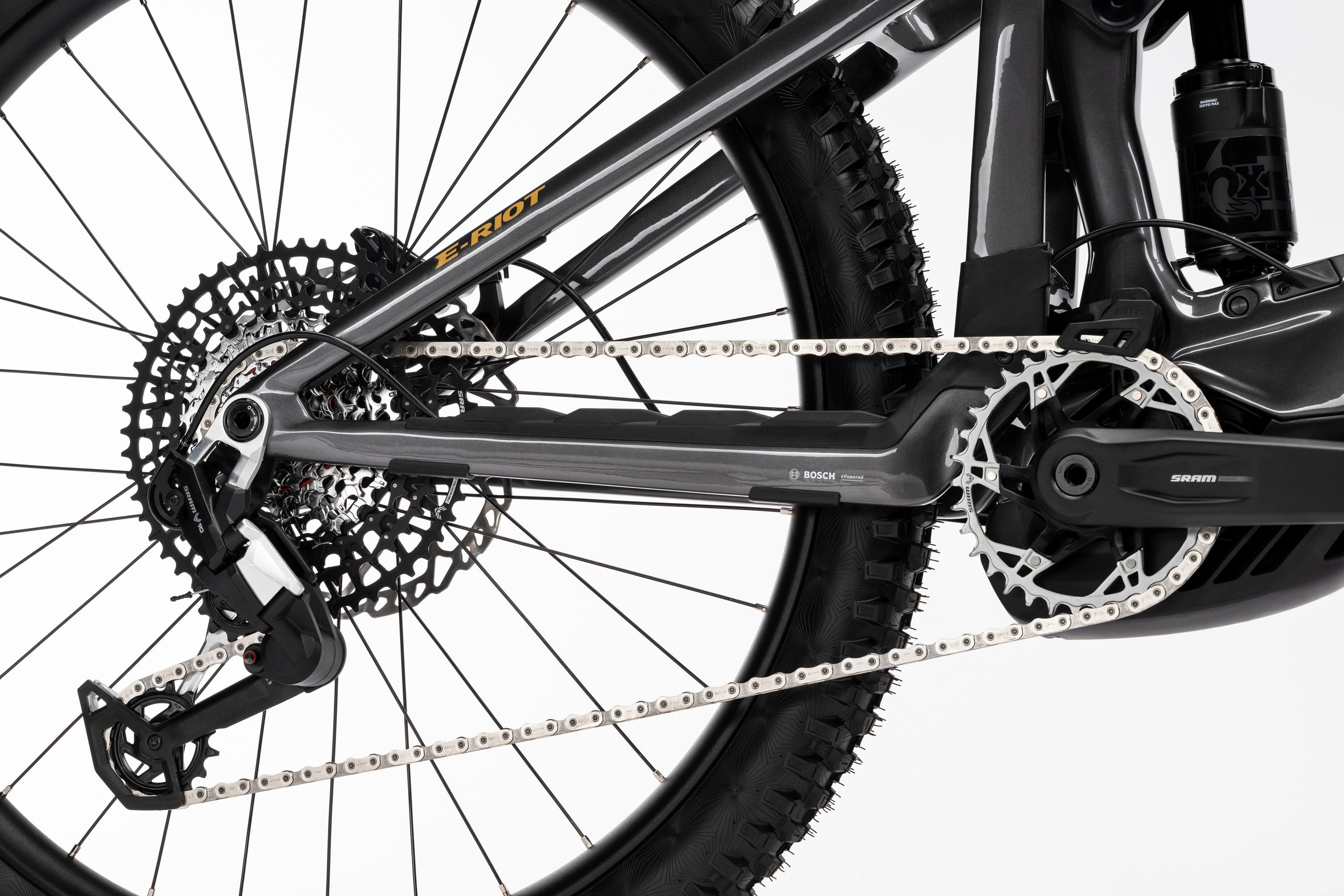 Napęd to SRAM Eagle 90 T-Type 1x12 z manetką Single Click Trigger, przerzutką Eagle 90 T-Type oraz kasetą 10–52T. Korba SRAM Eagle 90 ISIS współpracuje z silnikiem Boscha i prowadnicą łańcucha MRP 1x.