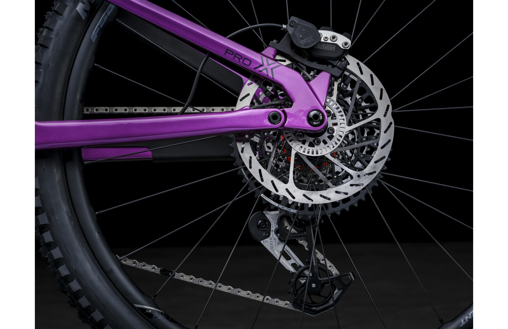 Moc hamowania zapewniają czterotłoczkowe hamulce hydrauliczne SRAM Maven Ultimate z 200 mm tarczami, które zapewniają maksymalną kontrolę i bezpieczeństwo nawet w wymagających sytuacjach.