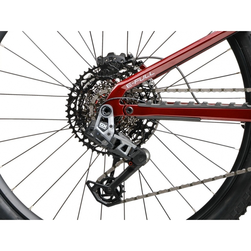 Napęd zapewnia najwyższej klasy elektroniczna grupa osprzętu SRAM GX Eagle AXS T-Type (1x12) z kasetą 10-52 zębów. Za bezpieczne hamowanie odpowiadają nowe hamulce hydrauliczne SRAM Maven Base z tarczami 200 mm z przodu i z tyłu - mocne i stabilne w każdych warunkach.