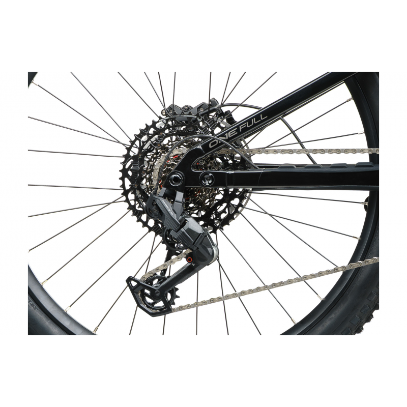 Przekładnia jest wyposażona w kasetę SRAM 70 T-Type Eagle (1x12) z zakresem 11-52 zębów i niezawodnym przenoszeniem mocy dzięki 34-zębowym korbom SRAM.