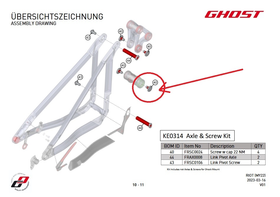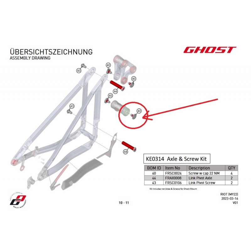 Oryginalna śruba z gwintem i zabezpieczeniem do dolnych łożysk wahacza w ramie marki Ghost modele aluminiowe z serii AM, EN