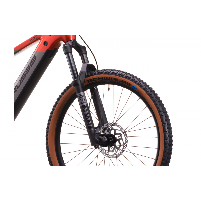 Pełna integracja akumulatora z ramą obniża środek ciężkości i poprawia stabilność. Komfort zapewnia widelec powietrzny ROCKSHOX FS Psylo Silver RC Solo Air 27,5" BOOST (skok 130 mm).
