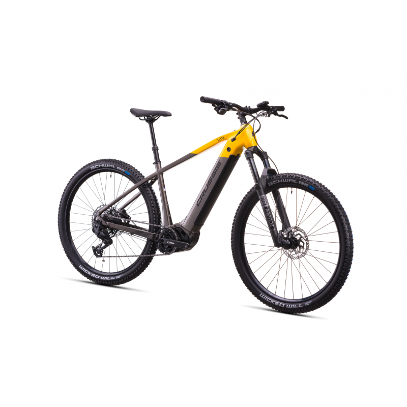 CRUSSIS e-Largo 10. 11 został zaprojektowany dla rowerzystów poszukujących niezawodnej i sprawnej maszyny na wymagające górskie szlaki. Aluminiowa rama łączy wytrzymałość z niewielką wagą, zapewniając zwinną i stabilną jazdę w zróżnicowanym terenie.