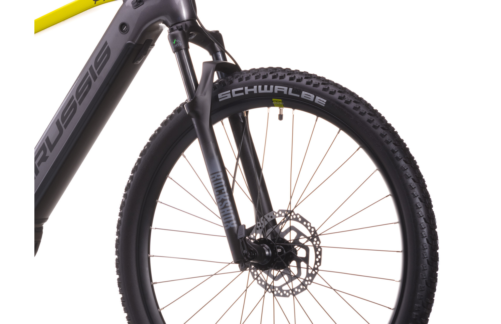 Dzięki oponom SCHWALBE SMART SAM Performance e-rower pokonuje teren płynnie i wydajnie - pokonując korzenie, żwir i leśne ścieżki z większą pewnością i mniejszym wysiłkiem. Dodajmy do tego widelec amortyzowany ROCKSHOX FS Judy Silver TK Solo Air o skoku 100 mm, który tłumi nierówności i przyczynia się do większego komfortu i kontroli.