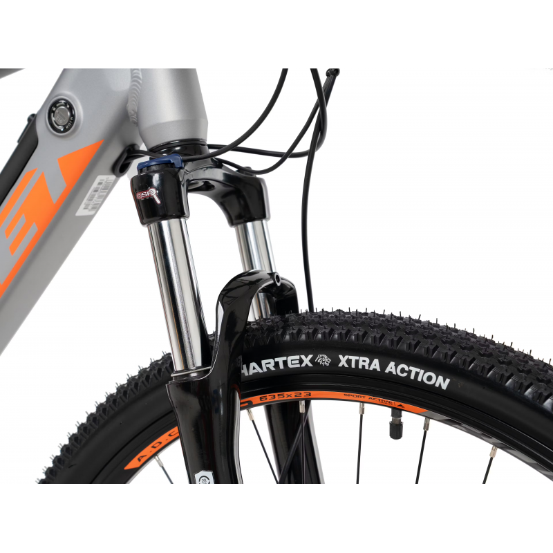 Żeby nawet w ciężkim terenie jazda była komfortowa E-Ramblera wyposażyliśmy w solidny amortyzator przedni Suntour XCT30, który skutecznie tłumi wszelkie nierówności. Z napędem elektrycznym współpracuje klasyczna grupa napędowa Shimano Deore 1x10. Charakteryzuje się ona szerokim wachlarzem przełożeń, co jest kluczowe podczas terenowej jazdy. Podczas takiej jazdy niezwykle istotnym jest bezpieczeństwo dlatego E-Rambler otrzymał bardzo dobry zestaw hydraulicznych hamulców tarczowych Shimano MT200. Model występuje w 5 wariantach kolorystycznych.