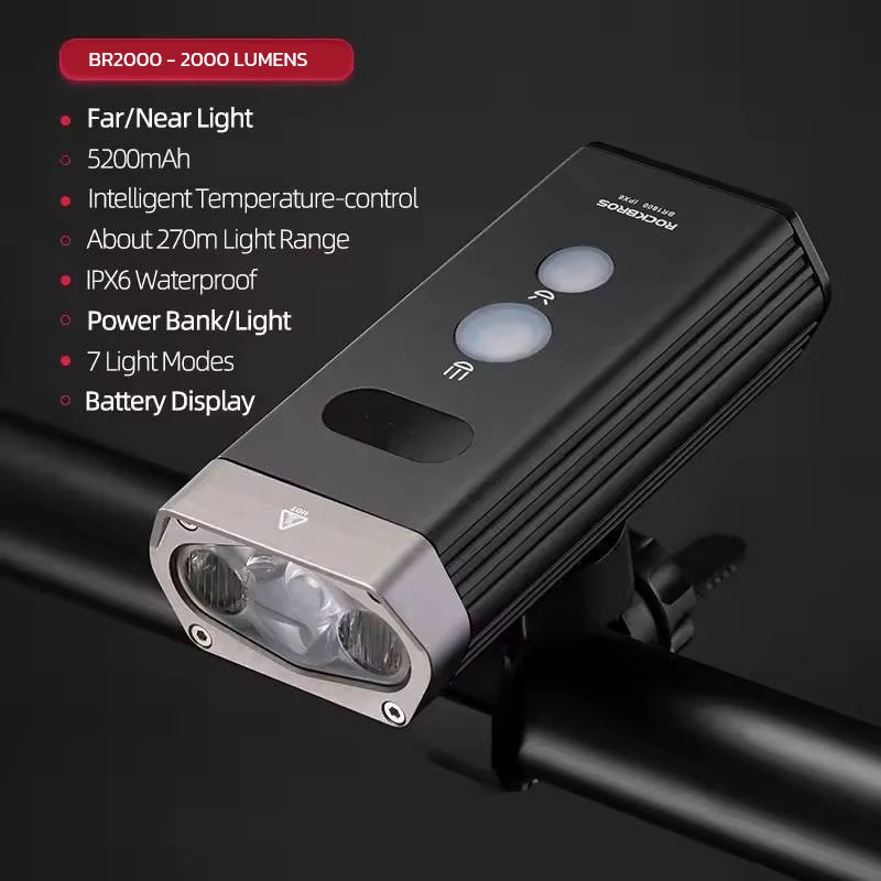 ROCKBROS BR2000 Lampka rowerowa przednia 2000LM USB IPX6 POWERBANK