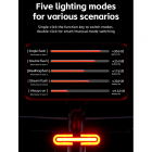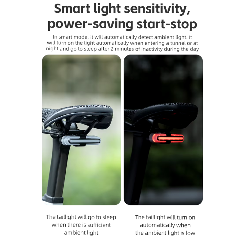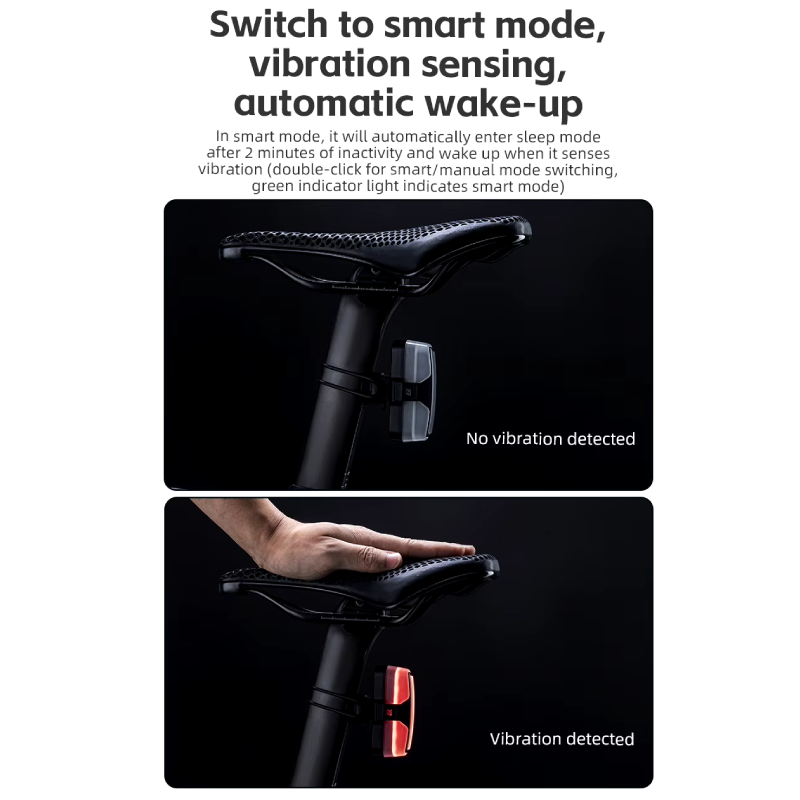 Dzięki zaawansowanemu czujnikowi hamulca, lampka automatycznie zapala się w momencie wyhamowania, informując innych uczestników ruchu o Twoich manewrach. Dodatkowo, inteligentny system wibracyjny włącza światło w ruchu, a czujnik oświetlenia dostosowuje jego działanie do warunków zewnętrznych.