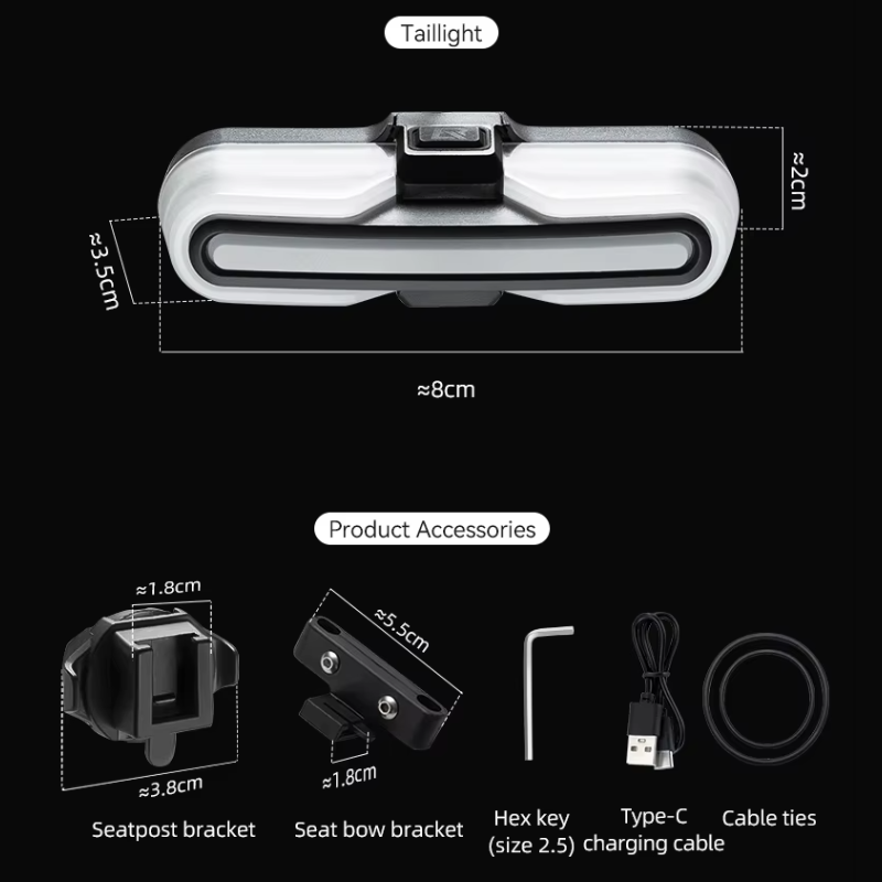ROCKBROS Tylna lampka rowerowa łączy w sobie funkcjonalność, nowoczesne technologie i trwałą konstrukcję. Stworzona z myślą o Twoim komforcie i bezpieczeństwie, sprawdzi się zarówno w mieście, jak i na wymagających trasach górskich.