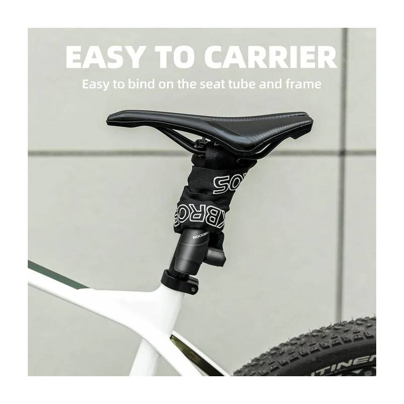 ROCKBROS łańcuchowy zamek rowerowy to niezawodne rozwiązanie dla wszystkich, którzy cenią bezpieczeństwo swojego jednośladu. Dzięki długości 95 cm, wytrzymałej konstrukcji ze stali hartowanej oraz wodoodpornemu pokrowcowi, to idealne zabezpieczenie dla rowerów, e-bike’ów, skuterów czy motocykli.