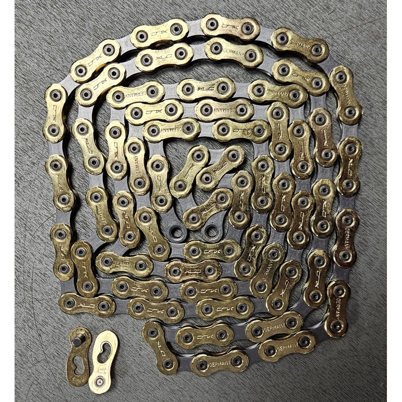 Bez dobrze działającego łańcucha nie możesz zmieniać biegów ani skutecznie prowadzić roweru do przodu. Ten łańcuch XLC do 11-biegowych przerzutek CC-C05 ma powłokę zapewniającą optymalną ochronę i złote sworznie zasilające, które nadają mu luksusowy wygląd. Sworznie mają długość 5,6 mm i wewnętrzną szerokość 2,2 mm. Wymiary łańcucha to 1/2 x 11/128 i ma 118 ogniw długości. Jest wyposażony w szybkozłączkę, dzięki której wymiana jest szybka i łatwa.