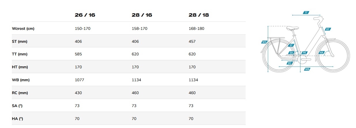 Bogato wyposażony w akcesoria tj. solidna podpórka, zestaw błotników, bagażnik, osłona łańcucha czy niezbędne oświetlenie przód i tył nadają praktycznego zastosowania. Występuje w dwóch rozmiarach rozmiarach kół – mniejsze 26″ z małą ramą 16″ oraz większe 28″ z ramami 16 i 18″.