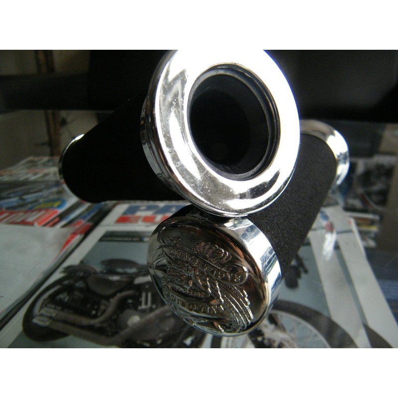 Czarne niklowane manetki o długości 5,5 '' (~13,46 cm), na kierownicę o średnicy 22mm.