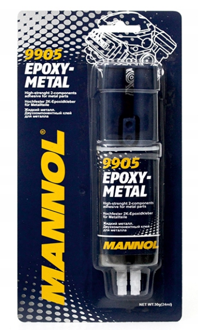 MANNOL Epoxy-Metal zaprojektowany do szybkiego i niezawodnego łączenia stali, aluminium, mosiądzu, miedzi, żelaza, cyny, ołowiu i różnych stopów.