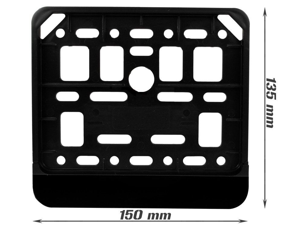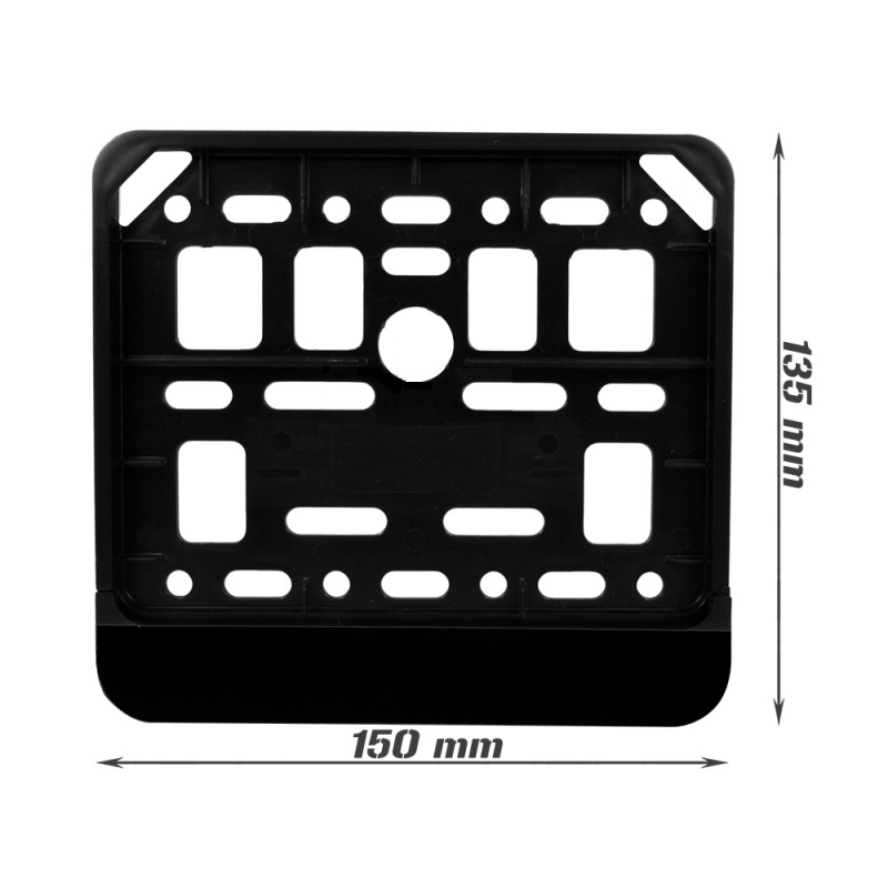 Ramka tablicy rejestracyjnej do motocykla/motoroweru. Kolor czarny, wymiary 135 na 150mm. Zamykana od dołu. Cena dotyczy jednej sztuki.