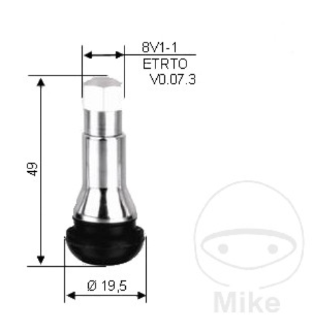 Kominek gumowy z nasadką metalową (chromowaną) typ TR414 do opon bezdętkowych. Nie ma konieczności nasadzania metalowej nasadki. Wówczas kominek będzie czarny. W zestawie kapturek metalowy i czarny z tworzywa.