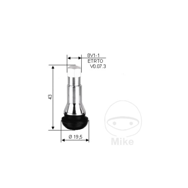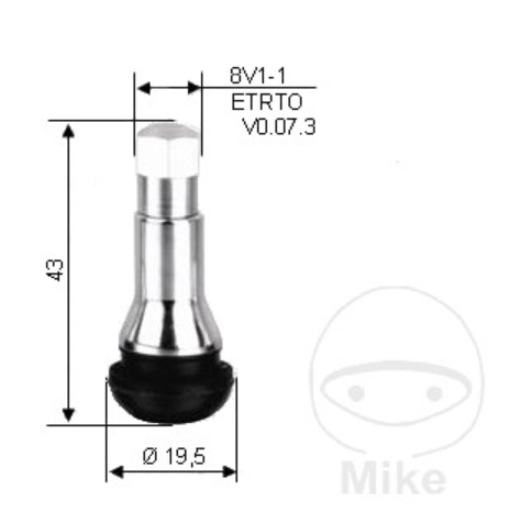 Kominek gumowy z nasadką metalową (chromowaną) typ TR413 do opon bezdętkowych. Nie ma konieczności nasadzania metalowej nasadki. Wówczas zawór będzie czarny. W zestawie kapturek metalowy.