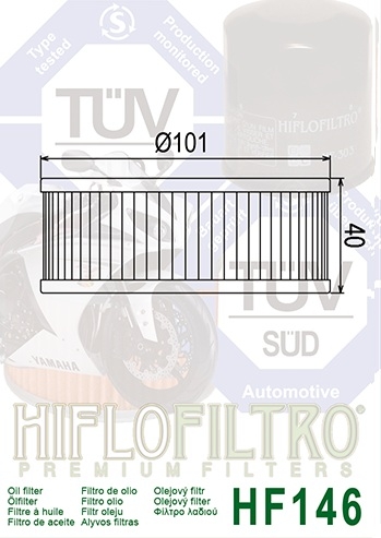 Hiflofiltro jest pierwszym producentem filtrów do motocykli, który uzyskał rygorystyczny certyfikat TUV. Opracowane do spełnienia ekstremalnych wymagań kontroli jakości, filtry Hiflo wypełniają całe zapotrzebowanie rynku motocyklowego, ATV i motorowodnego, zachowując najwyższy poziom ochrony silnika.