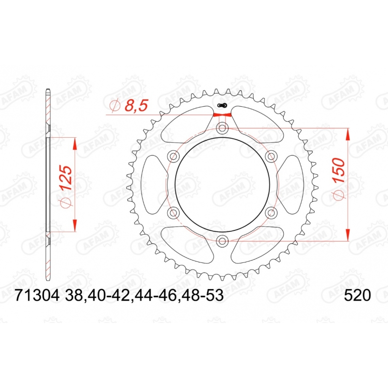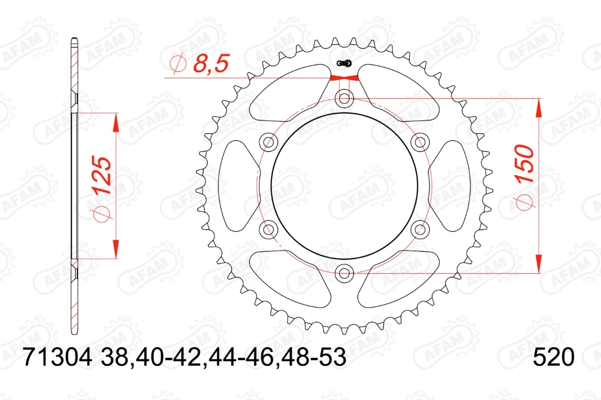 Nowa zębatka marki AFAM z 48 zębami. Zębatka tylna stalowa do łańcucha 520 kod 71304-48 Afam