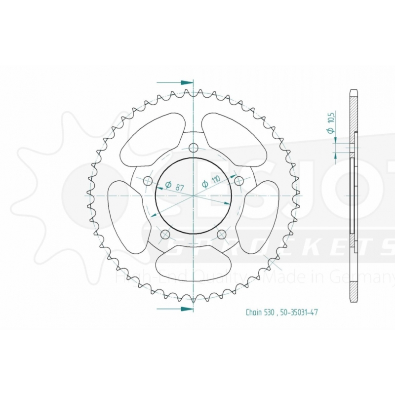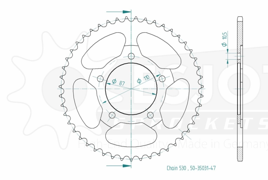 Wyprodukowano w Niemczech: Wszystkie zębatki ESJOT są produkowane w Niemczech, co gwarantuje przestrzeganie najwyższych standardów inżynierii i kontroli jakości.