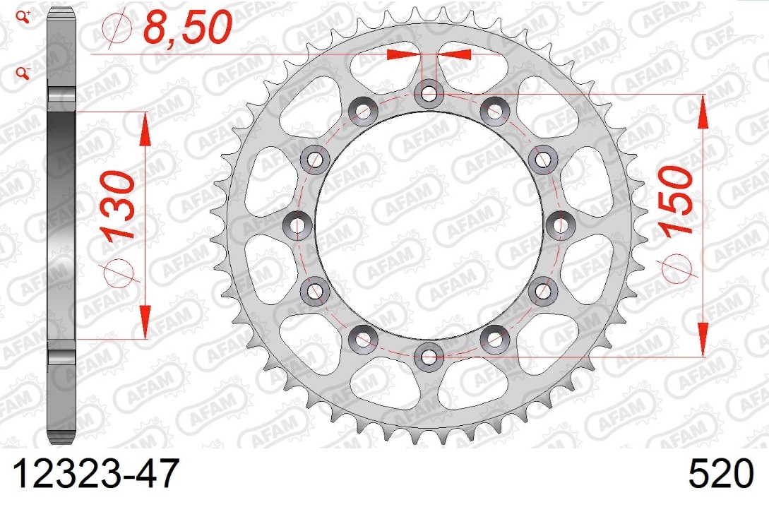 Tylna zębatka marki Afam: Model 10304-47Kolor: SrebrnyMateriał: StalPasuje do łańcucha 520