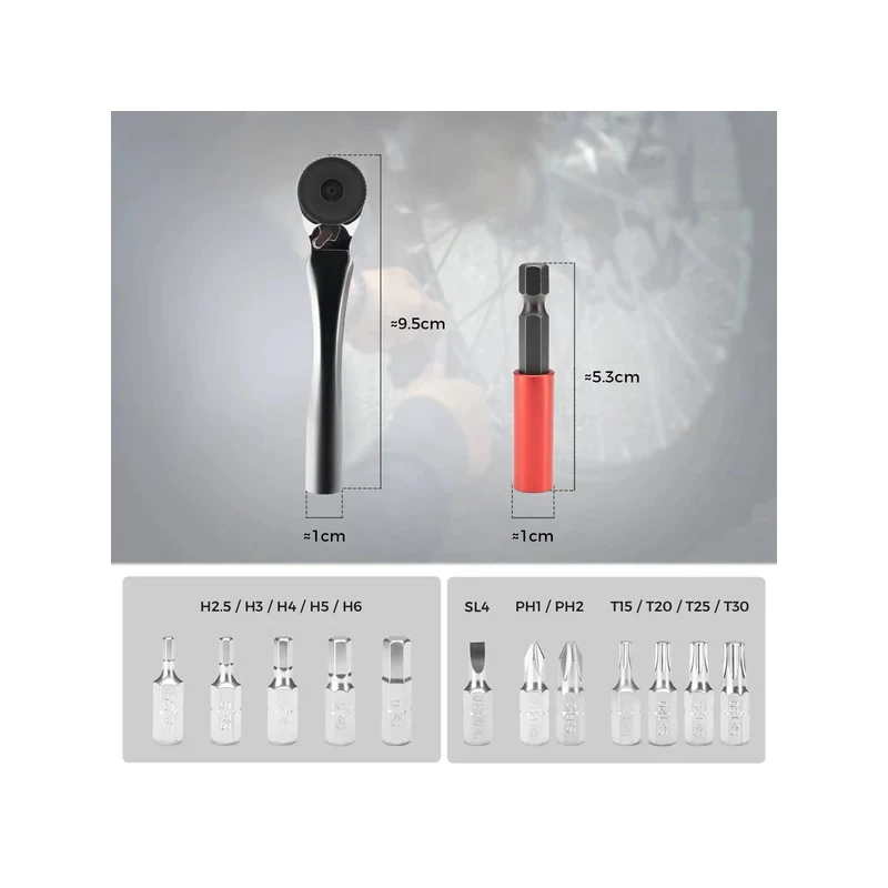 Uniwersalność zastosowań (MTB, Szosa, Gravel): Niezależnie od tego, czy jeździsz rowerem górskim, szosowym, gravelem czy miejskim – ten zestaw obsłuży większość standardowych śrub w Twoim sprzęcie. Idealny do regulacji mostka, siodełka, przerzutek czy montażu akcesoriów.