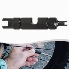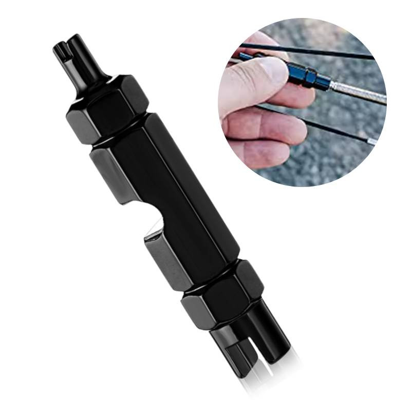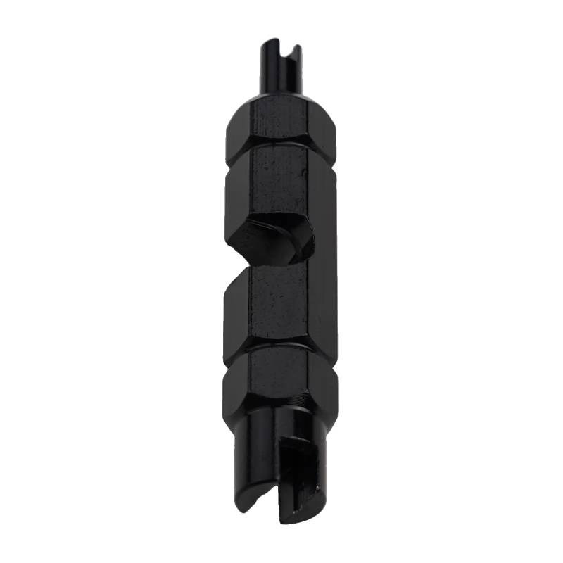 Klucz do wentyli to praktyczne i niezbędne narzędzie dla każdego rowerzysty. Dzięki swojej funkcjonalności pozwala na szybkie i łatwe odkręcanie i wkręcanie wentyli Schrader (AV) oraz Presta (FV). Jest to idealne rozwiązanie zarówno w przypadku standardowych wentyli samochodowych, jak i rowerowych, a także przy pracy z przedłużkami wentyli Presta.