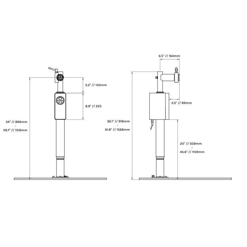 - Szeroki zakres regulacji: Minimalna wysokość 866 mm, maksymalna 1516 mm.
