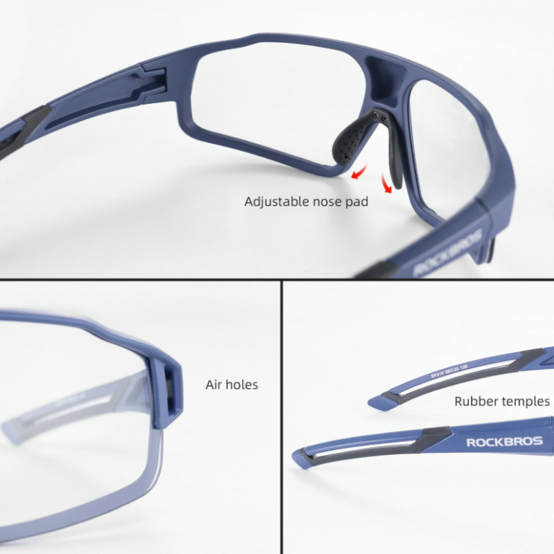 ROCKBROS SP216BL to fotochromowe okulary rowerowe zaprojektowane z myślą o miłośnikach sportu i aktywności na świeżym powietrzu. Wyposażone w soczewki automatycznie dostosowujące się do zmieniających się warunków oświetleniowych, zapewniają doskonałą widoczność i pełną ochronę oczu.