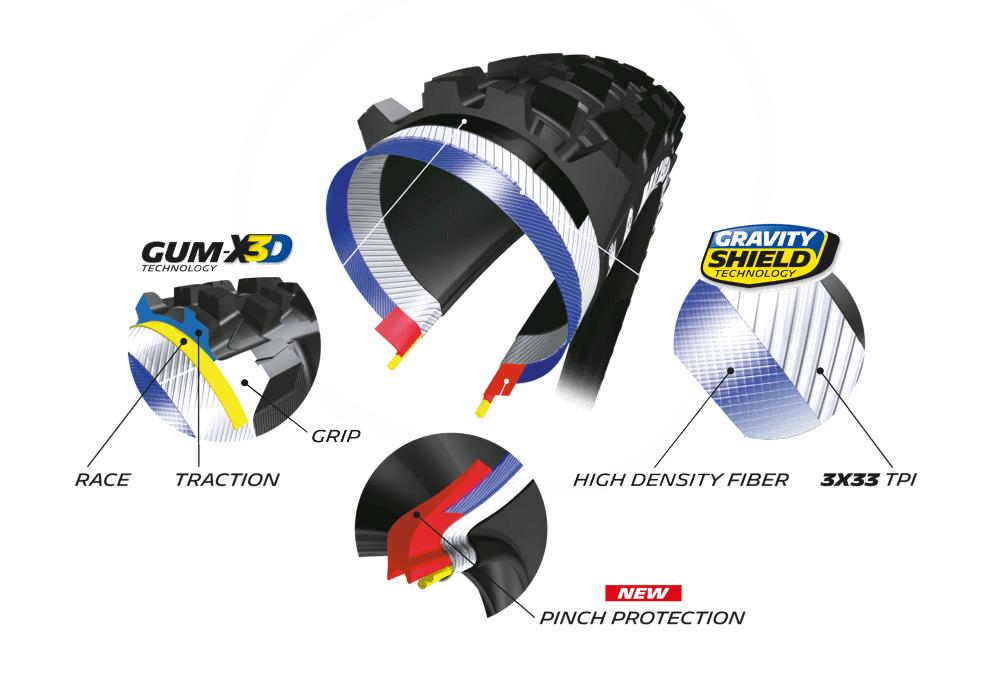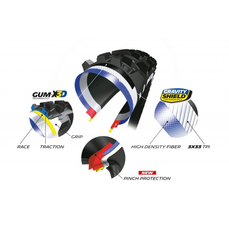 - dla maksymalnej wytrzymałości i elastyczności osnowa Gravity Shield została dostosowana do wymagań tylnej opony Enduro