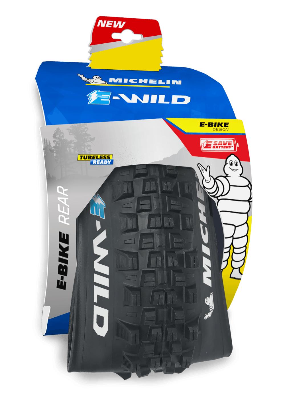 - Mieszanka gumowa E-GUM-X tylnej opony MICHELIN E-Wild zapewnia niskie opory toczenia, optymalizuje żywotność bieżnika i minimalizuje zużycie.