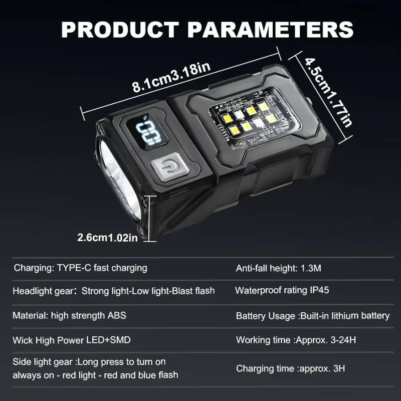 - Wiele trybów oświetlenia: wyposażona w diodę LED COB (8 trybów pracy) zapewniając odpowiednie światło do każdego zadania.