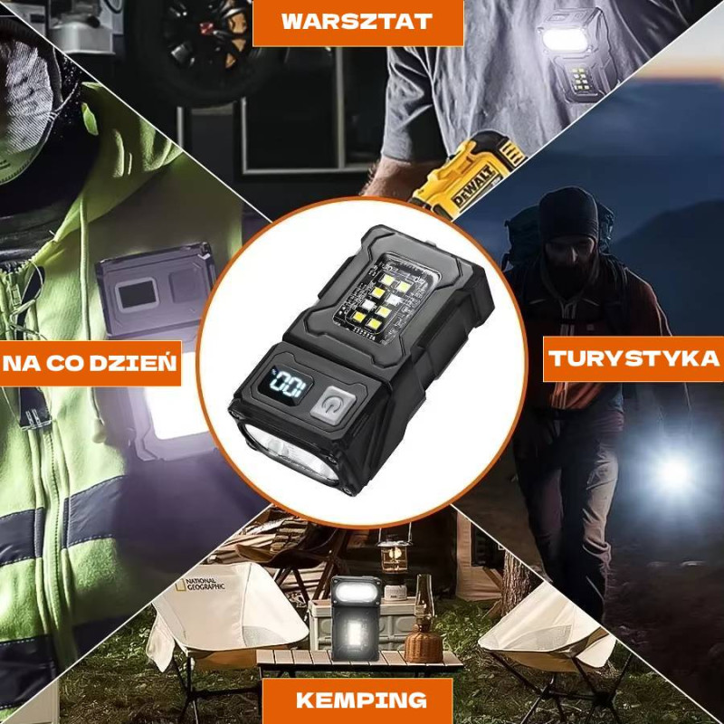 - Wielofunkcyjność i wszechstronne zastosowanie: latarka może służyć jako klasyczna latarka lub światło w warsztacie. Jest idealna do turystyki i pracy.
