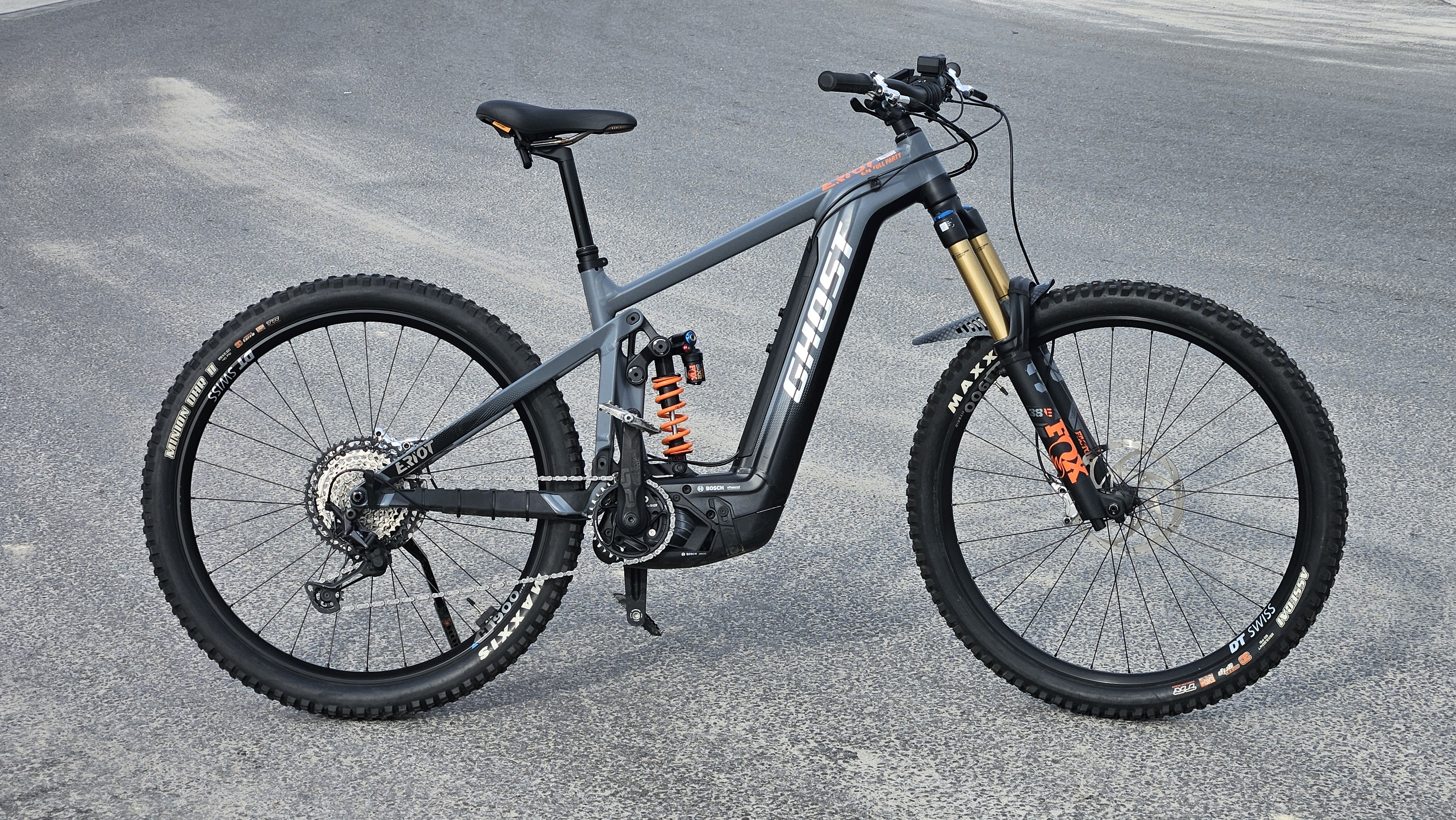 Ghost E-RIOT EN AL/AL 170/160 Full Party to zaawansowany elektryczny rower enduro z silnikiem Bosch CX-R, zawieszeniem FOX 170/160 mm i baterią Bosch PowerTube 750 Wh. Stworzony do jazdy w najtrudniejszym terenie i na wymagających trasach górskich.