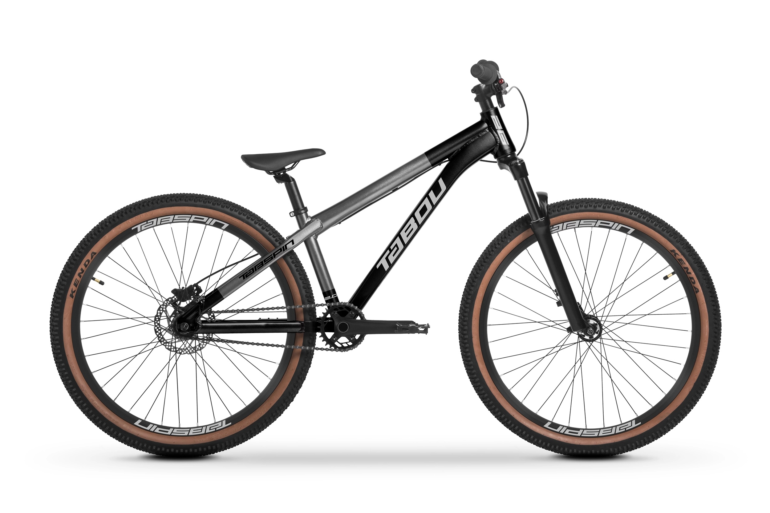 Tabou Tabspin 2.0 – dirtowy rower z lekką aluminiową ramą, na kołach 26". Idealny na pumptracki i skateparki.