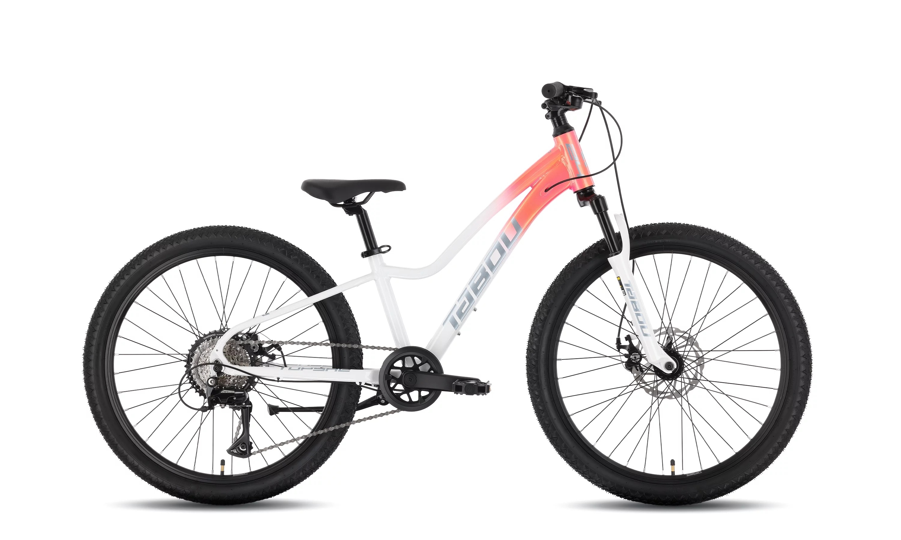 Model Tabou TopShe 24 PRO przeznaczony jest dla młodzieży o wzroście 125–145 cm. Rower oparty jest na lekkiej aluminiowej ramie z wewnętrznym prowadzeniem linek i geometrią ułatwiającą wsiadanie oraz kontrolę.