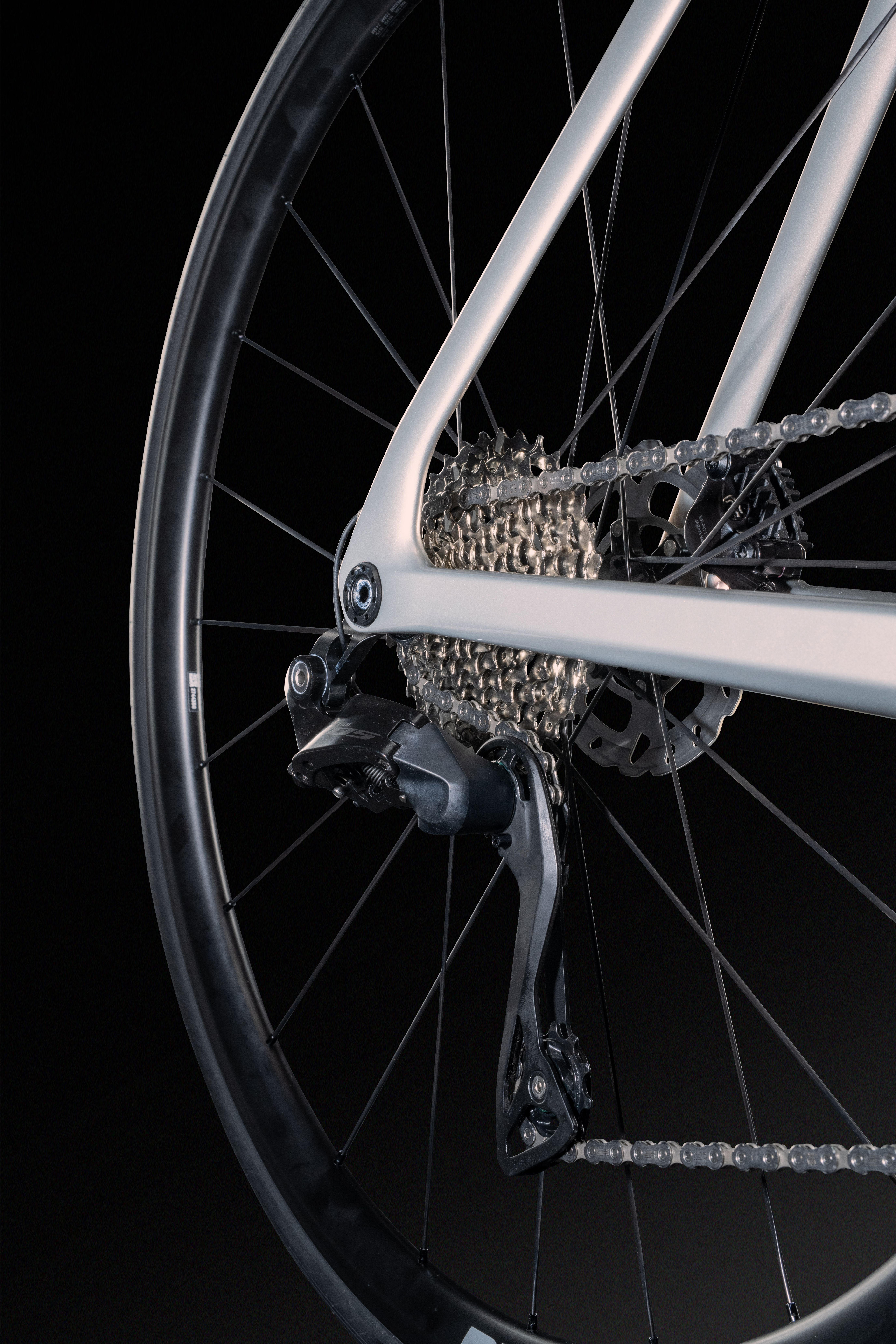 Precyzyjne i płynne zmiany biegów dzięki nowoczesnej 12-rzędowej grupie Shimano 105 Di2. -