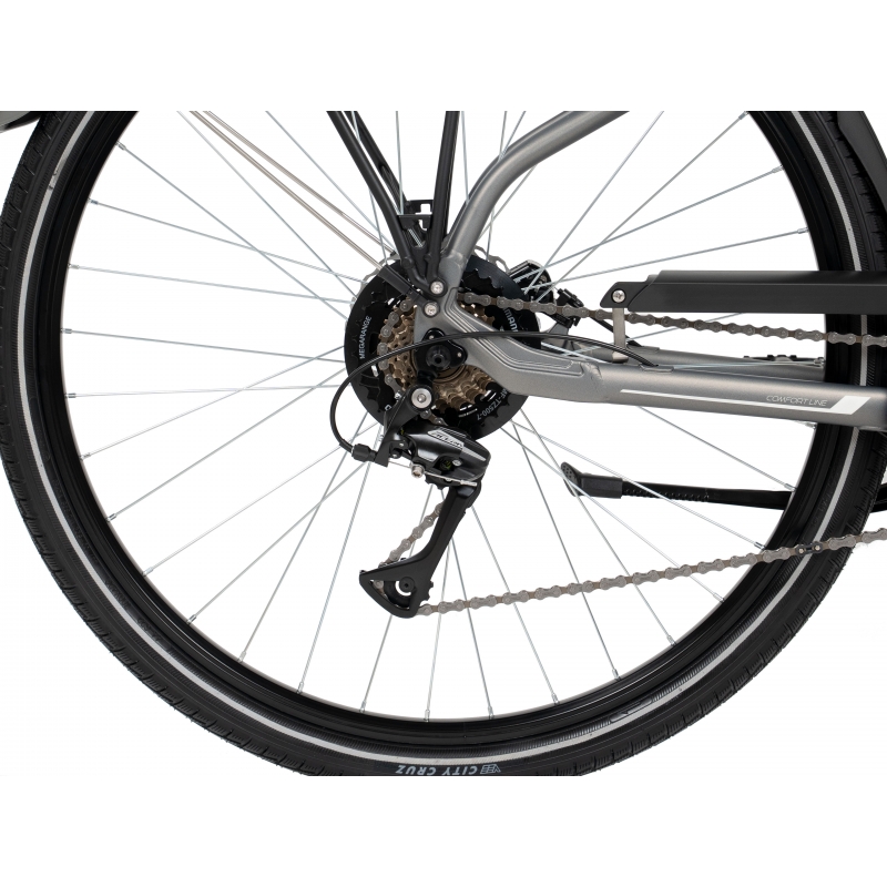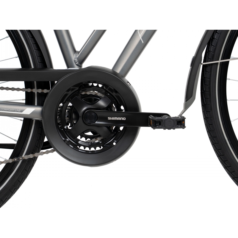 Komfort codziennej eksploatacji zwiększają również wygodne komponenty, takie jak siodło Selle Royal, ergonomiczne chwyty kierownicy oraz praktyczna trekkingowa pozycja za kierownicą.