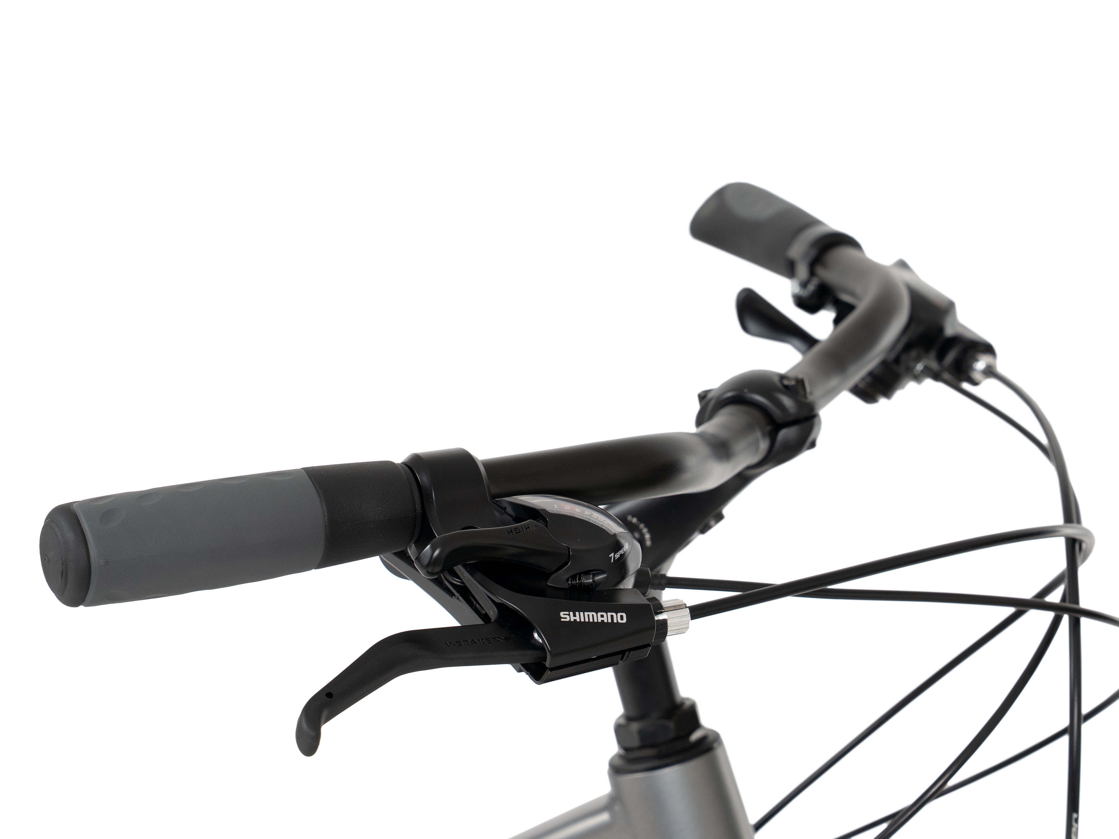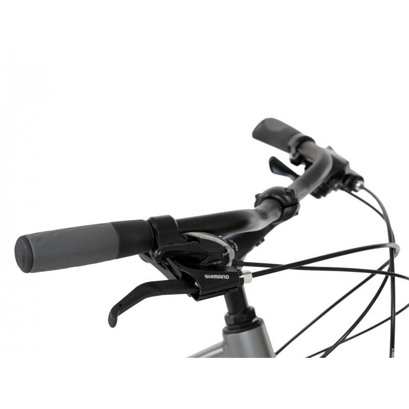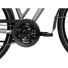 Napęd oferuje 21 biegów w układzie 3x7, co zapewnia szeroki zakres przełożeń przydatny zarówno na płaskich odcinkach, jak i podczas jazdy pod lekkie wzniesienia. Rower korzysta z komponentów Shimano, takich jak przednia przerzutka Shimano FD-TY601-L3, tylna przerzutka Shimano Acera RD-M3020-8 oraz zespolone dźwignie Shimano STEF500 3x7, które ułatwiają obsługę i zapewniają wygodną zmianę przełożeń podczas jazdy.