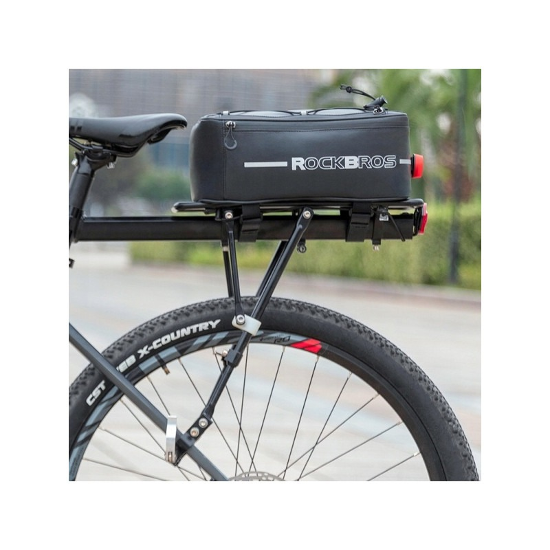 Torba rowerowa Rockbros 30141700001 pasuje do większości typów bagażników. Można ją łatwo i szybko zamocować na tylnym bagażniku dzięki uniwersalnym paskom na rzepy. Na jednym z końców została wszyta pętla, w której można umieścić lampkę tylną.