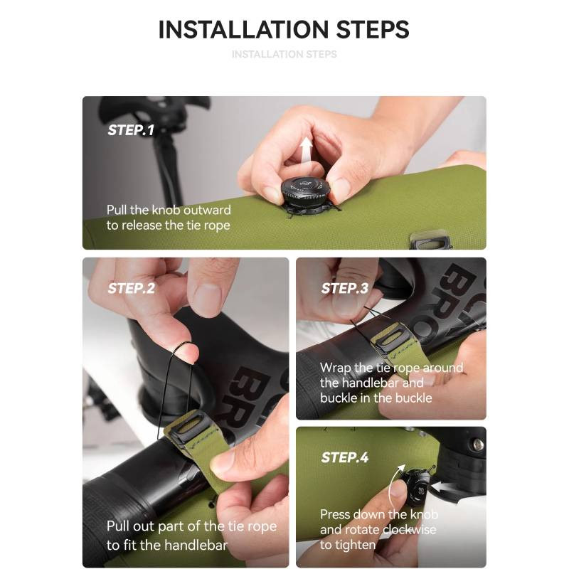 Torba została wyposażona w system mocowania za pomocą pokrętła, co zapewnia szybki i stabilny montaż oraz demontaż. Pokrętło działa w połączeniu z wytrzymałą linką, umożliwiając łatwe i bezpieczne przymocowanie torby do roweru. Odblaskowe elementy poprawiają widoczność i zwiększają bezpieczeństwo jazdy po zmroku. Z myślą o wygodzie użytkowania, torba posiada boczne kieszenie z siatki gdzie można przechowywać drobne przedmioty.