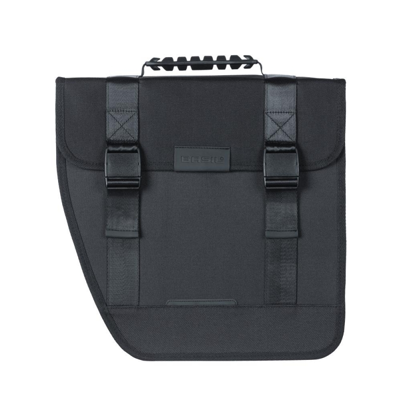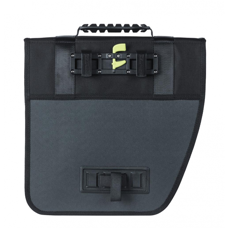 The Basil Tour is a single bicycle bag that hangs on the left side of the bike. By attaching the bag to the left side of the bike, the rounding of the bag is on the saddle side. This prevents you from hitting the bag with your heel while riding. The modern bag has a total volume of 14 litres – enough space for all the things you need on a day trip or want to carry after a little shopping. The Basil Tour Left is made of 600D polyester and has a rain cover that ensures that raindrops do not penetrate inside. In addition, the bag is dimensionally stable and has a robust handle. So you can carry it easily any time. Thanks to the comfortable handle and the easy-to-use fasteners, practical storage space is always within reach. In addition, the bag can be easily removed to take it shopping, for example. The Hook-On system also makes it easy to attach to your (electric) bike.
