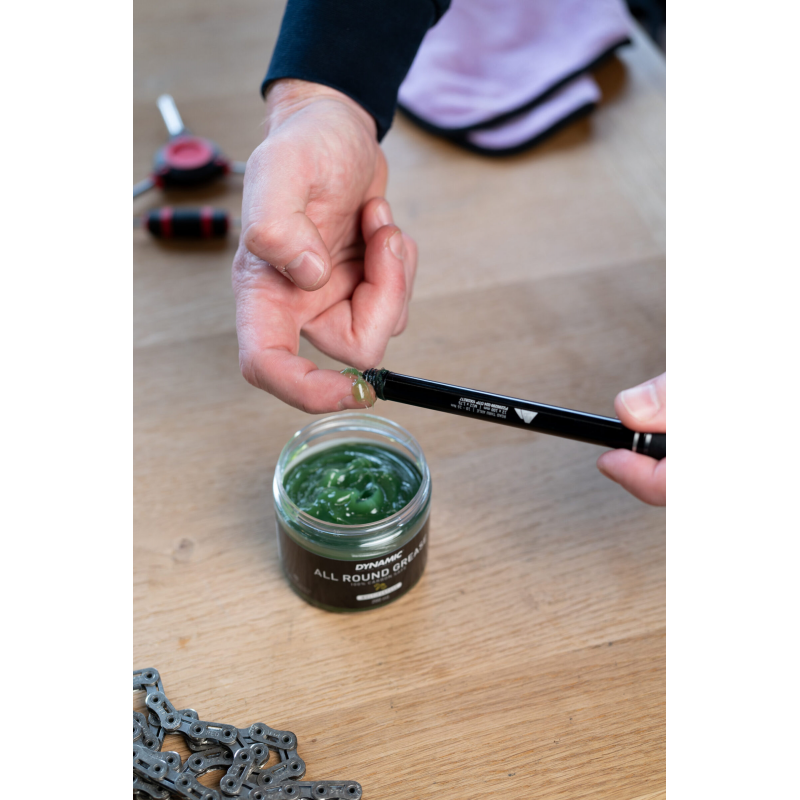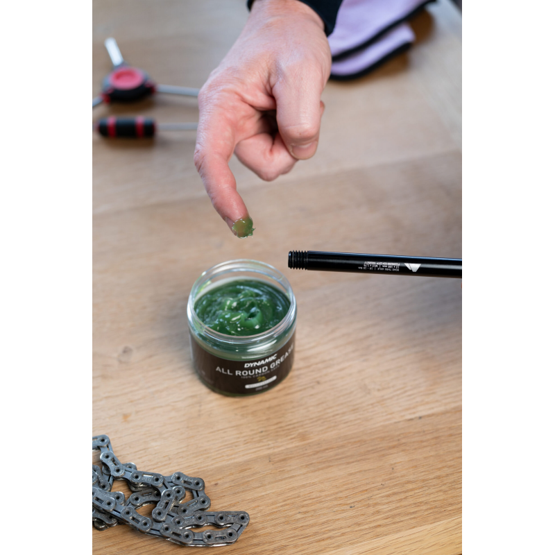 Dynamic All Round Grease to wszechstronny smar montażowy i konserwujący, stworzony z myślą o profesjonalnych serwisach oraz wymagających rowerzystach. Doskonale sprawdza się podczas montażu i konserwacji wszystkich elementów roweru — od łożysk i piast, po gwinty, sztyce, stery czy pedały.