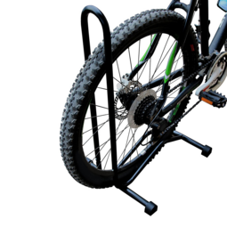 Uniwersalny stojak rowerowy Roxar, przeznaczony dla rowerów o rozmiarach kół od 16" do 29". Stojak posiada szeroką podstawę, co zapewnia dobrą stabilność umieszczonego w nim roweru.